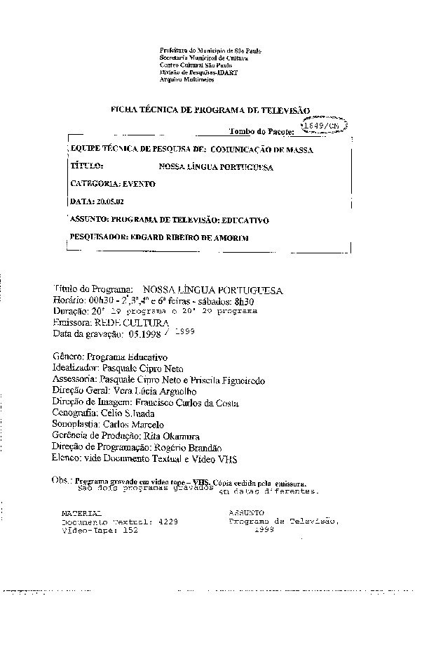 23/08/2022 by Francisco da Silva Santos Leia Mais...Registro do programa apresentado por Pasquale Cipro Neto levado ao ar pela TV Cultura