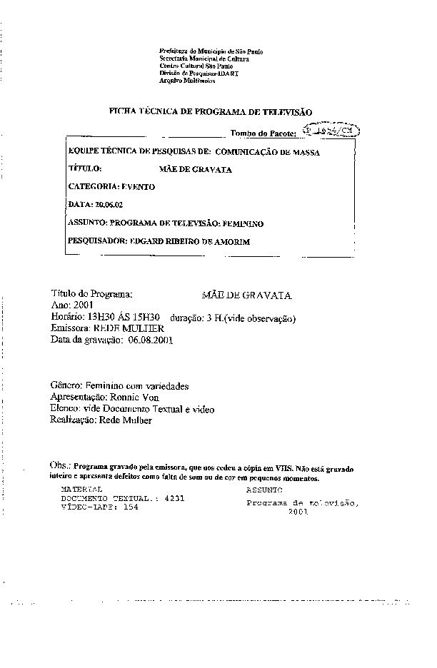 23/08/2022 by Francisco da Silva Santos Leia Mais...Registro do programa apresentado por Ronnie Von levado ao ar pela Rede Mulher