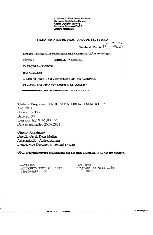23/08/2022 by Francisco da Silva Santos Leia Mais...Registro do programa apresentado por Andrea Rossin levado ao ar pela rede Mulher