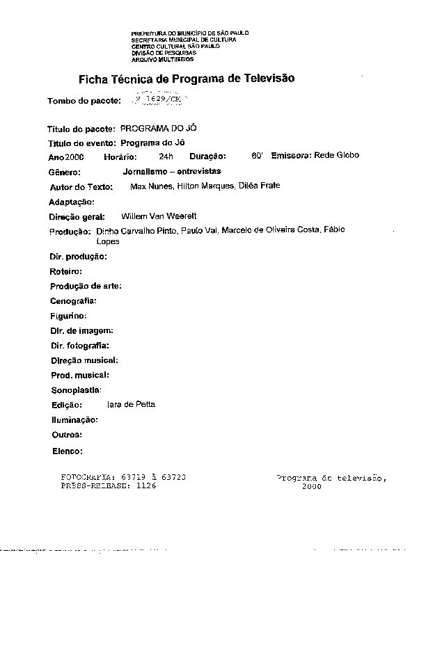 23/08/2022 by Francisco da Silva Santos Leia Mais...Registro do programa apresentado por Jô Soares levado ao ar pela TV Globo.