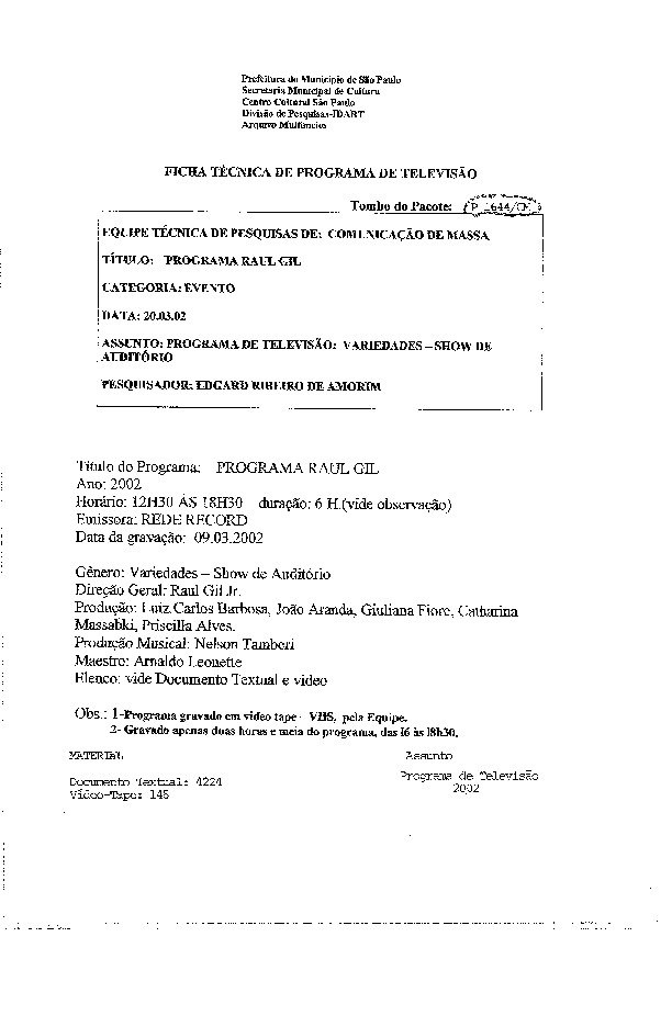 23/08/2022 by Francisco da Silva Santos Leia Mais...Registro do programa apresentado por Raul Gil levado ao ar pela Rede Record
