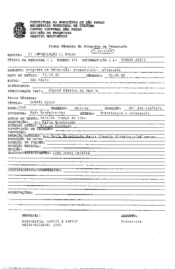 23/08/2022 by Francisco da Silva Santos Leia Mais...Registro de capítulo da telenovela de Geraldo França de Lima levada ao ar pela TV Bandeirantes.