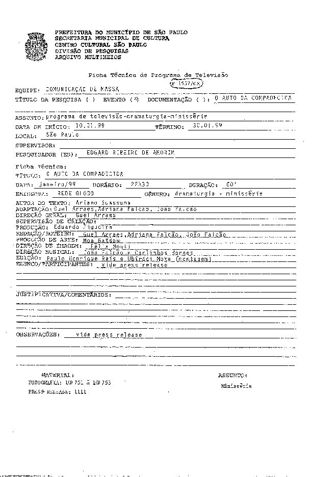 23/08/2022 by Francisco da Silva Santos Leia Mais...Registro de capítulo da minissérie de Ariano Suassuna levada ao ar pela TV Globo.