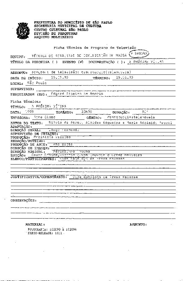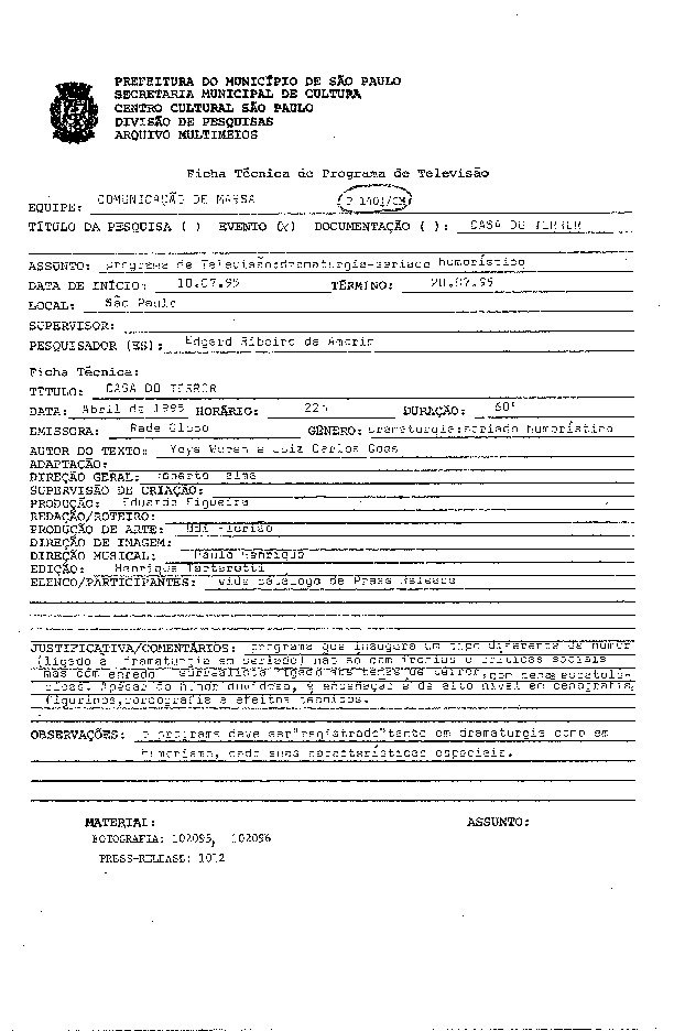 23/08/2022 by Francisco da Silva Santos Leia Mais...Registro de capítulo da série de televisão de Yoya Wursch e Luiz Carlos Goes levado ao ar pela TV Globo.