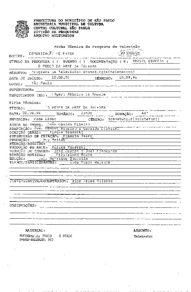 Registro do programa Brasil Especial apresentando o teleteatro O Poder da Arte da Palavra baseado em obra de João Ubaldo Ribeiro, levado ao ar pela TV Globo.