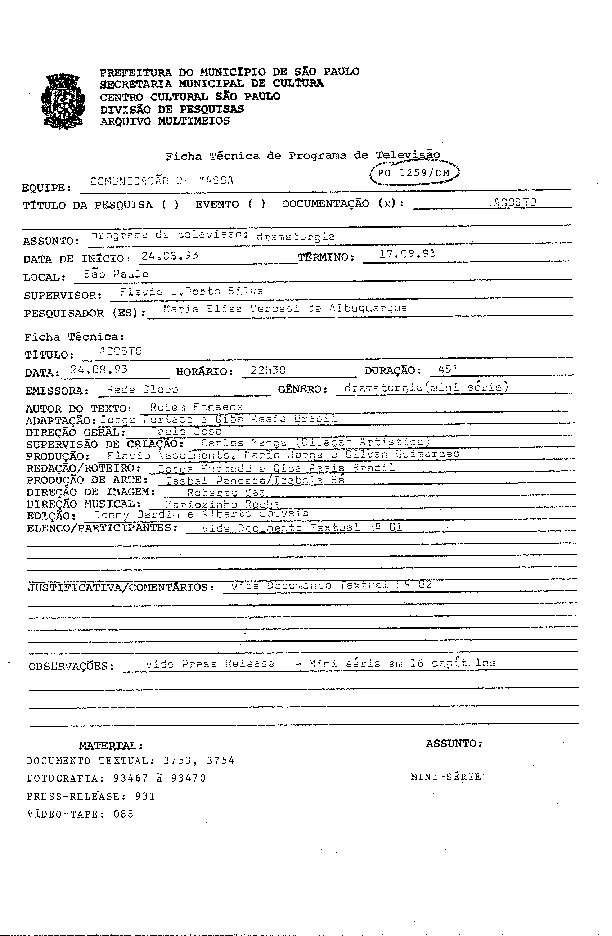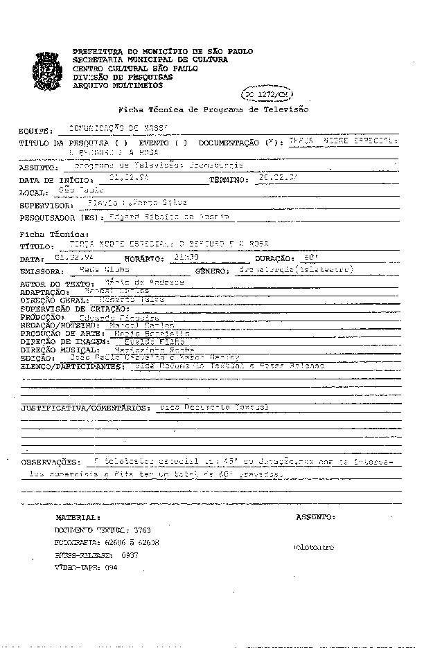 23/08/2022 by Francisco da Silva Santos Leia Mais...Registro do programa Brasil Especial apresentando o teleteatro O Besouro e A Rosa baseado em obra de Mário de Andrade levado ao ar pela TV Globo.