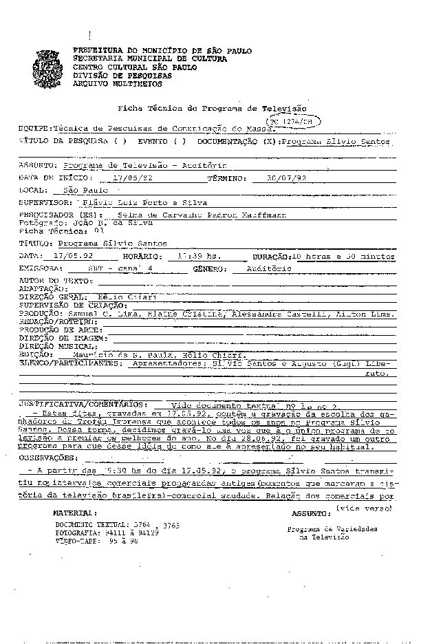 23/08/2022 by Francisco da Silva Santos Leia Mais...Registro do programa de auditório apresentado por Sílvio Santos e Gugu Liberato levado ao ar pelo Sistema Brasileiro de Televisão – SBT.