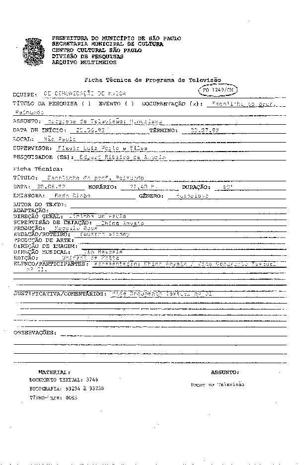 23/08/2022 by Francisco da Silva Santos Leia Mais...Registro do programa apresentado por Chico Anysio levado ao ar pela TV Globo.