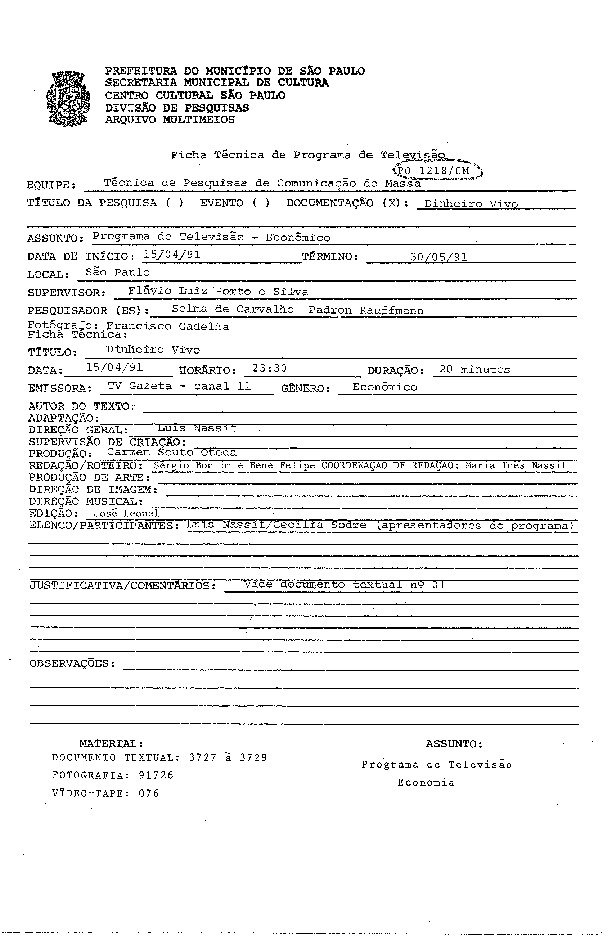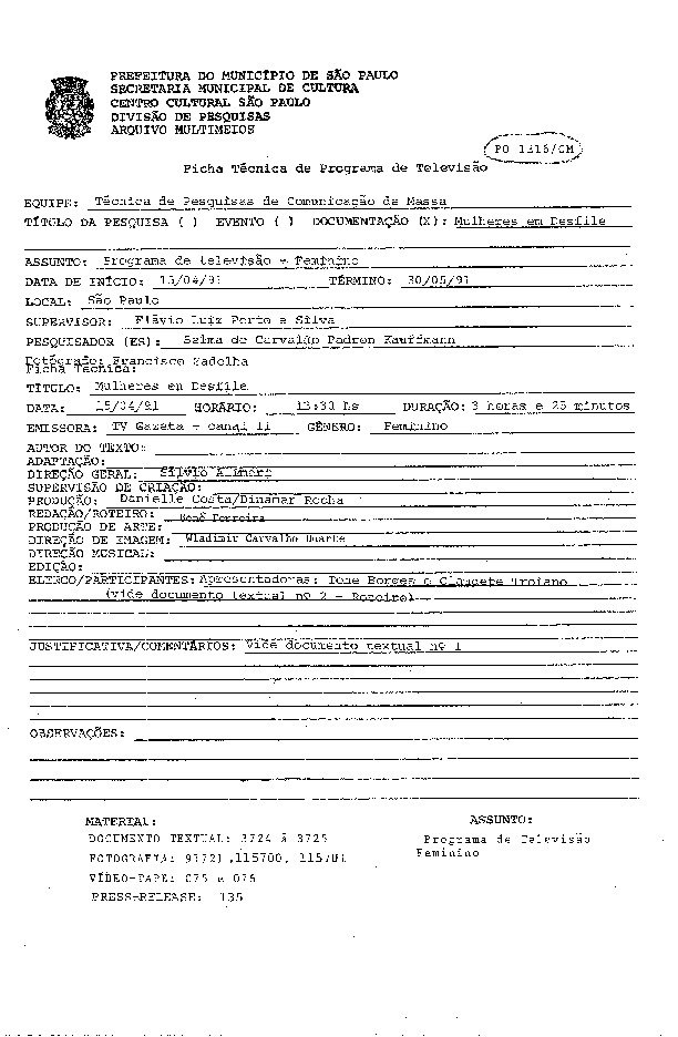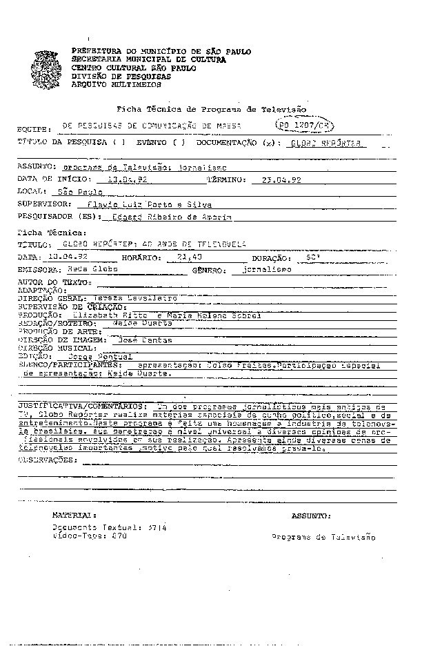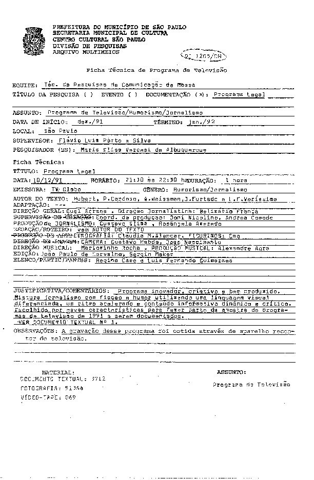 Registro do programa apresentado por Marília Gabriela e Ney Gonçalves Dias levado ao ar pela TV Globo.