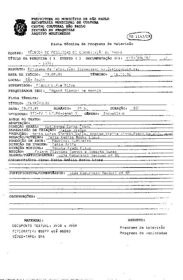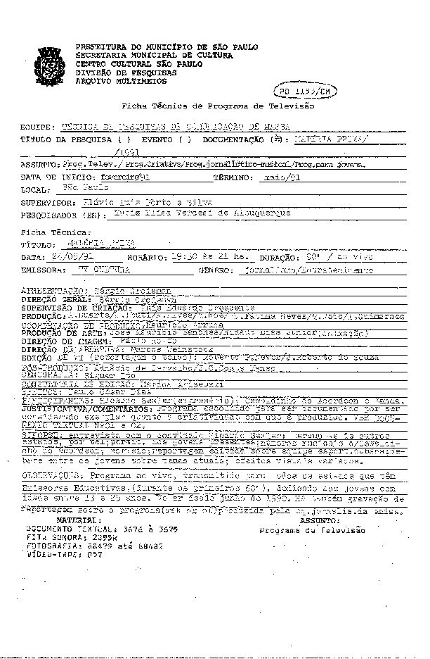 23/08/2022 by Francisco da Silva Santos Leia Mais...Registro do programa apresentado por Lúcia Soares levado ao ar pela TV Cultura.