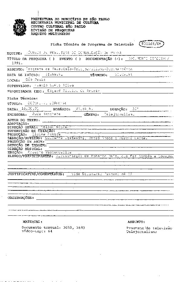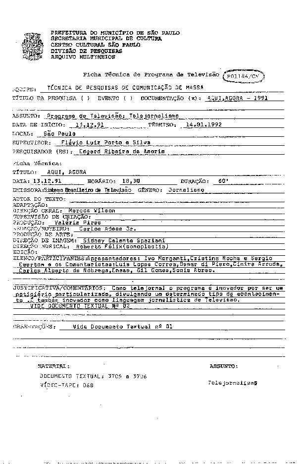 Registro do programa apresentado por Cid Moreira e Sérgio Chapellin levado ao ar pela TV Globo.