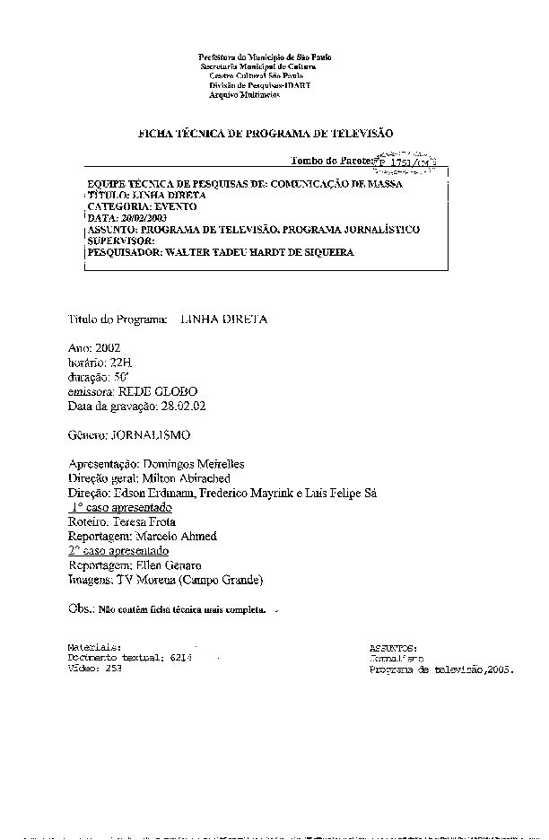 23/08/2022 by Francisco da Silva Santos Leia Mais...Registro do programa apresentado por Domingos Meirelles, levado ao ar pela Rede Globo.