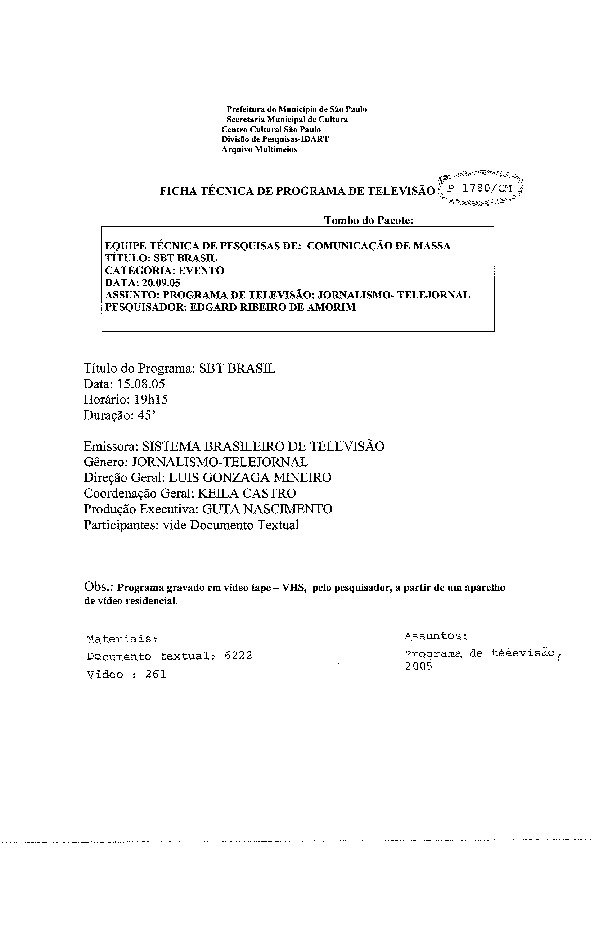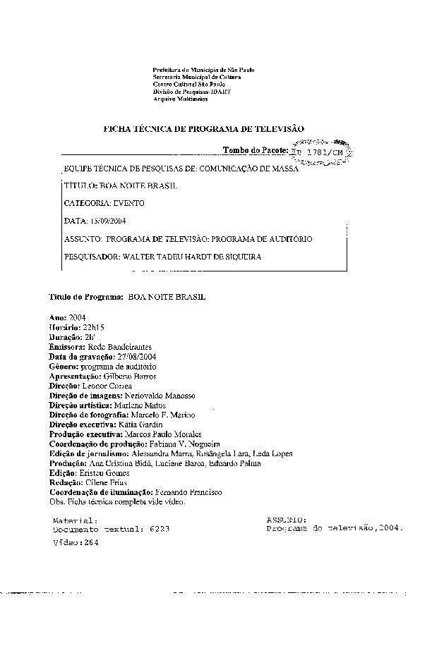 23/08/2022 by Francisco da Silva Santos Leia Mais...Registro do programa apresentado por Gilberto Barros, levado ao ar pela Rede Bandeirantes.