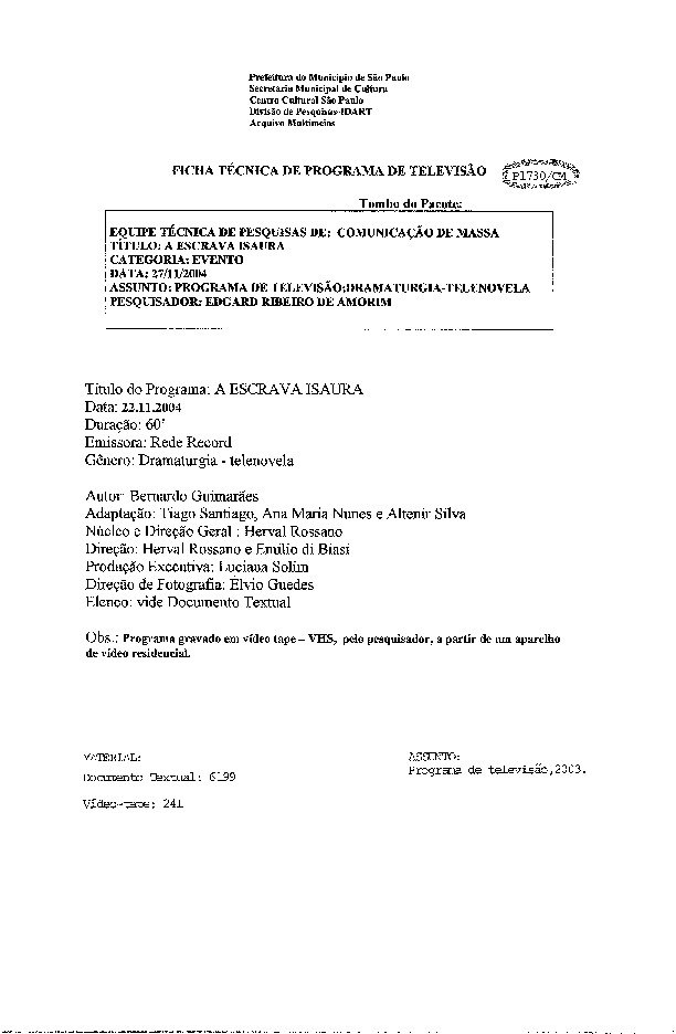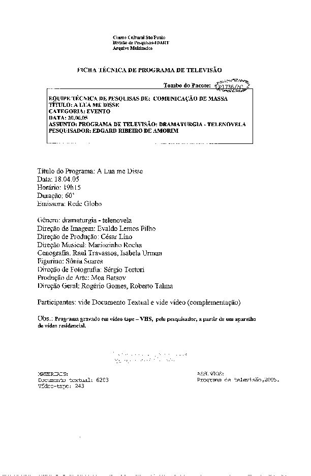 23/08/2022 by Francisco da Silva Santos Leia Mais...Registro da telenovela dirigida por Dennis Carvalho e Mauro Mendonça Filho, levada ao ar pela Rede Globo